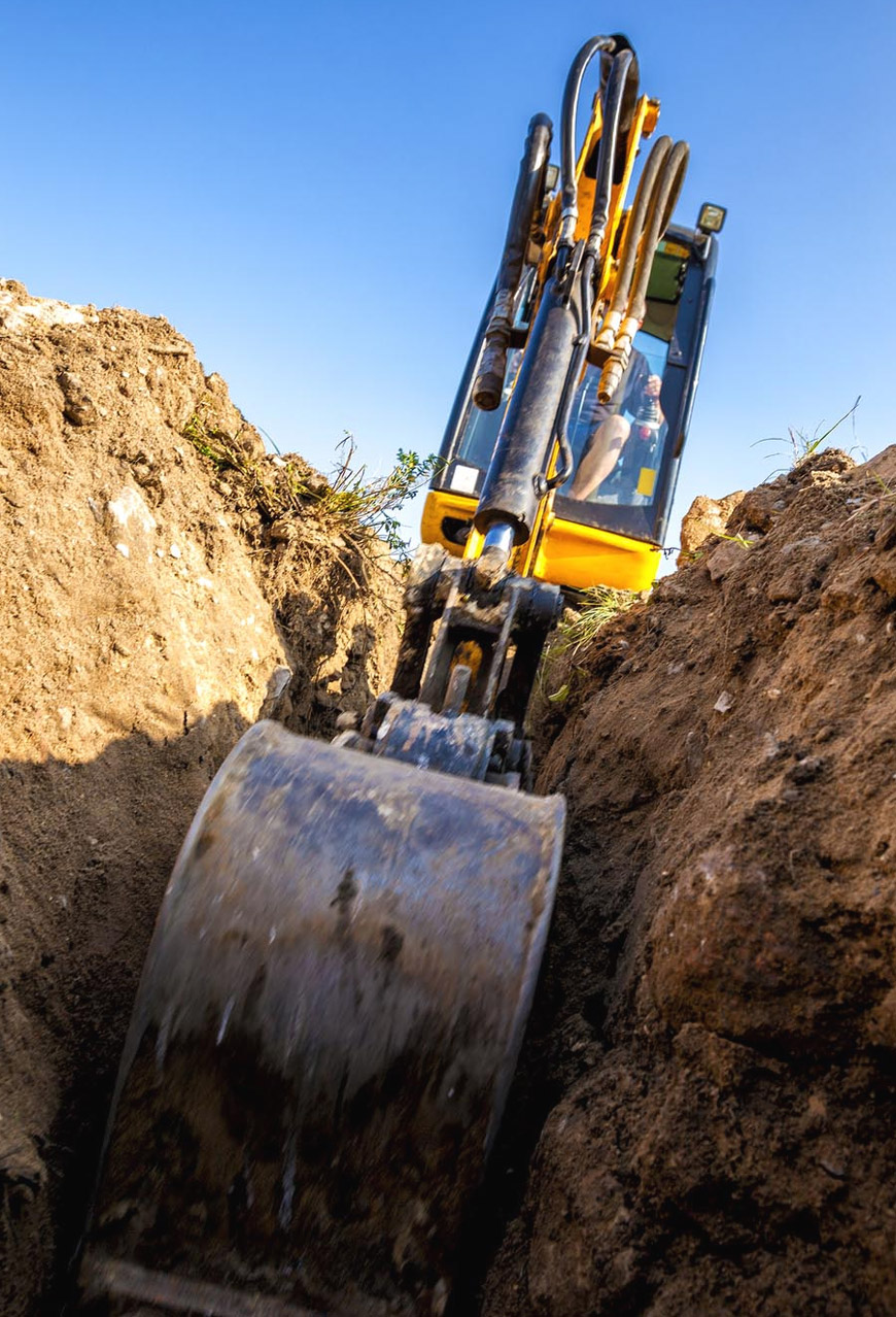 Izvodimo sve vrste zemljanih radova u građevinarstvu: čišćenje područja građenja, sečenje i uklanjanje grmlja i drveća, uklanjanje postojećih instalacija, mašinski iskop zemlje, nasipanje i nivelisanja terena, odvoz viška zemlje i šuta, kao i dovoz zemlje ili drugih materijala potrebnih za nasipanje.